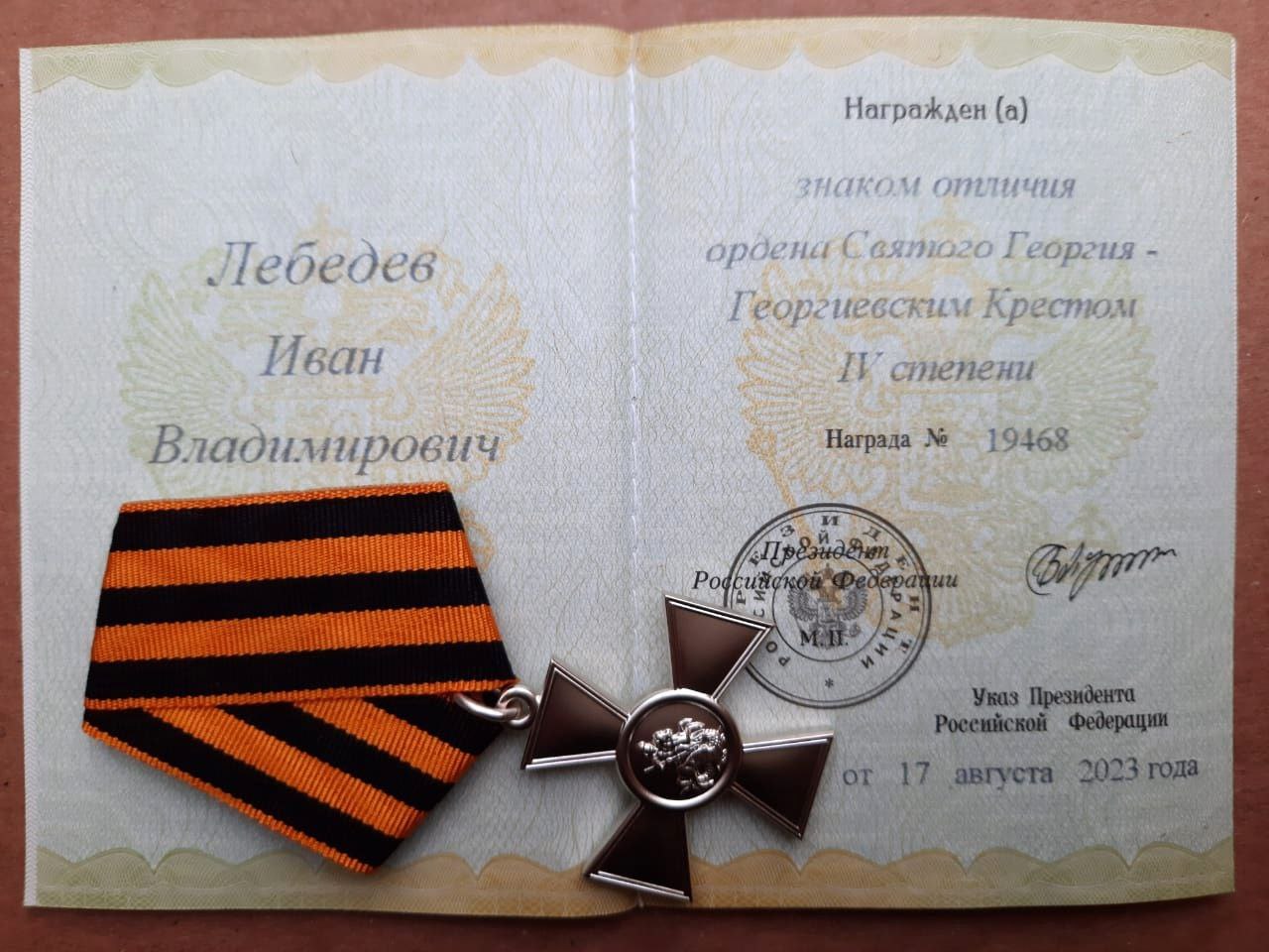 «С передовой спецоперации пришла хорошая новость — наш земляк, ветеран-пограничник Иван Лебедев из Перми награждён орденом Святого Георгия — Георгиевским Крестом IV степени. Награду с подписью президента РФ Владимира Путина боец получил из рук своего командира», — говорится в посте.