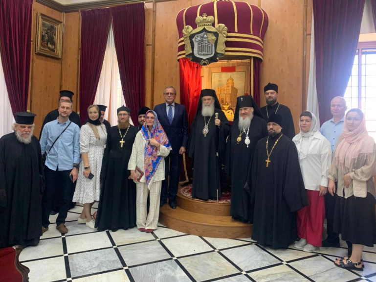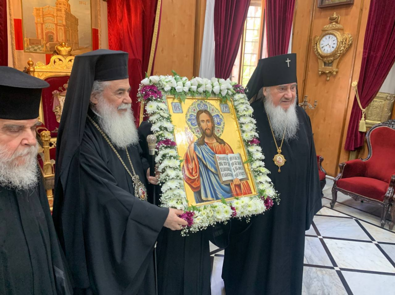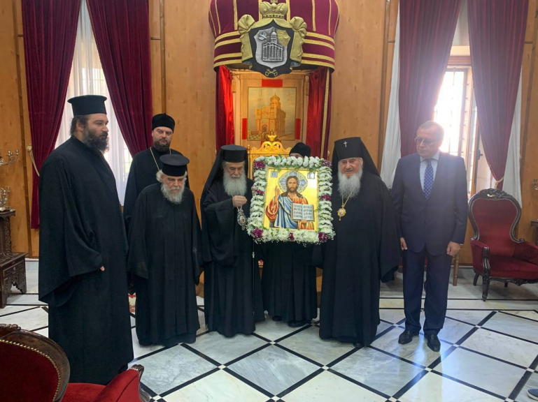 Патриарх Феофил III благословил делегацию, прибывшую в Святую землю для освящения в Храме Гроба Господня написанной в Иерусалиме иконы "Господь Вседержитель".