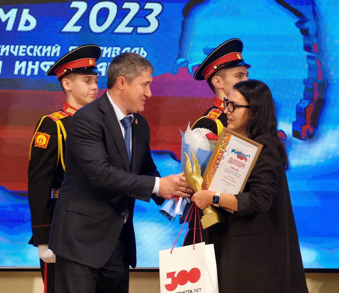 Дмитрий Махонин вручил Гран-при фестиваля СМИ «Щит России» главе ГТРК «Белгород»
