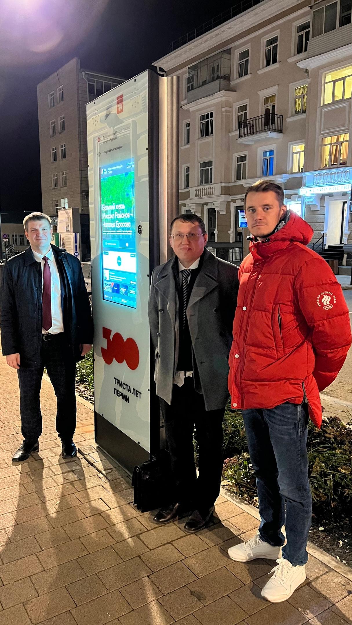 Первую стелу протестировали вице-премьер Пермского края Алексей Черников, министр информационного развития и связи Пермского края Пётр Шиловских, а также жители города.