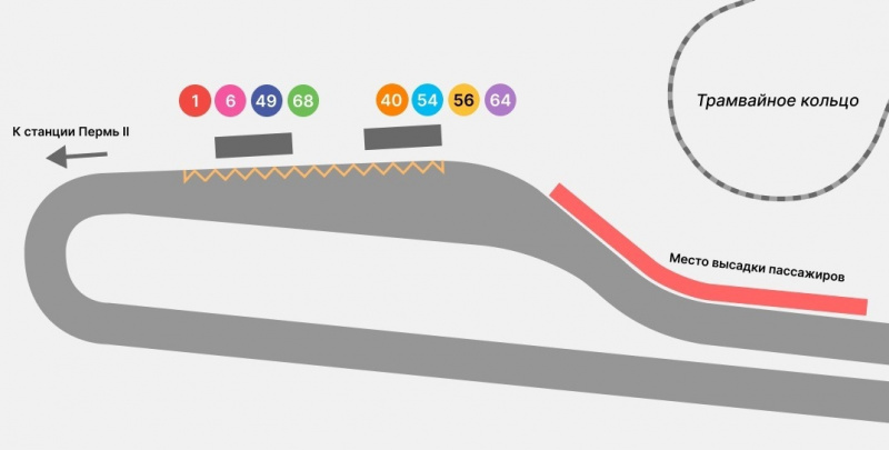 Высадка пассажиров будет осуществляться возле трамвайного разворота.