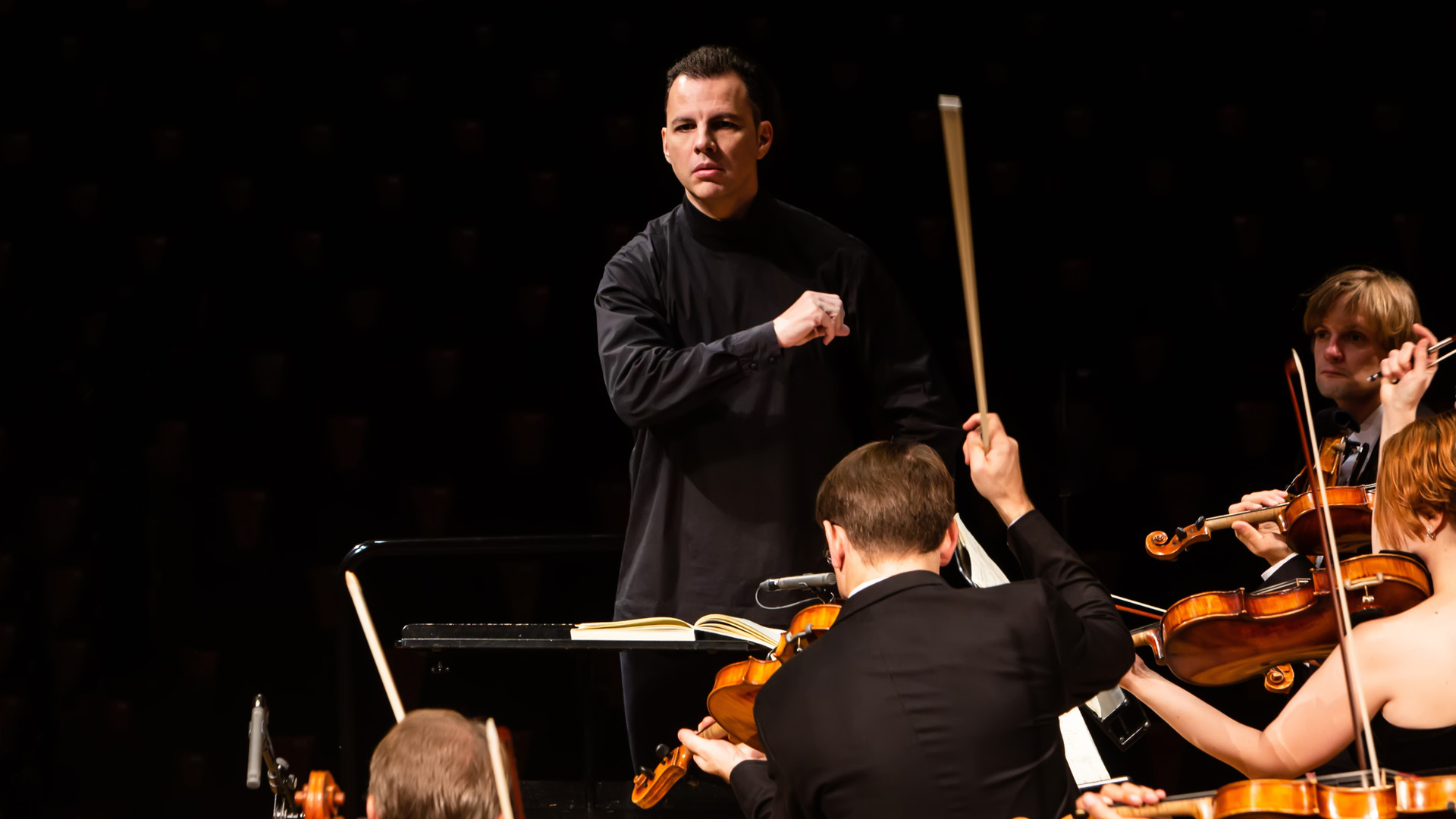 дирижёра Владимира Ткаченко дополняет, «договаривает» за героиню, раскрывает её