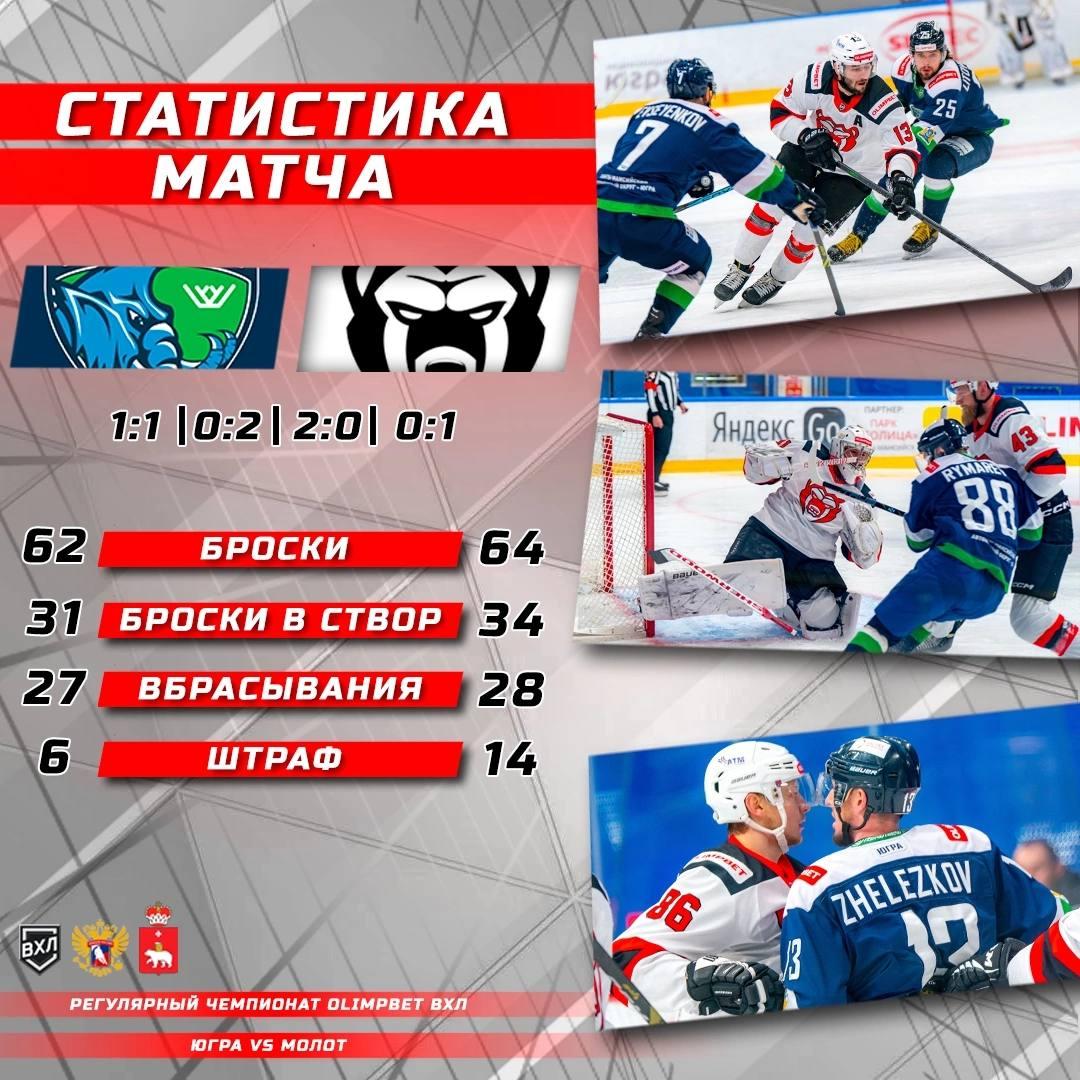 Для выявления победителя, как и в матче в Тюмени с «Рубином», потребовался овертайм. Основное время поединка завершилось вничью 3:3. Авторами голов в составе пермяков стали Егор Манин, Кирилл Казаков и Игорь Зенчиков. В овертайме «Молот» вновь оказывается удачливее соперников, и Рауль Акмальдинов забивает решающую шайбу.
