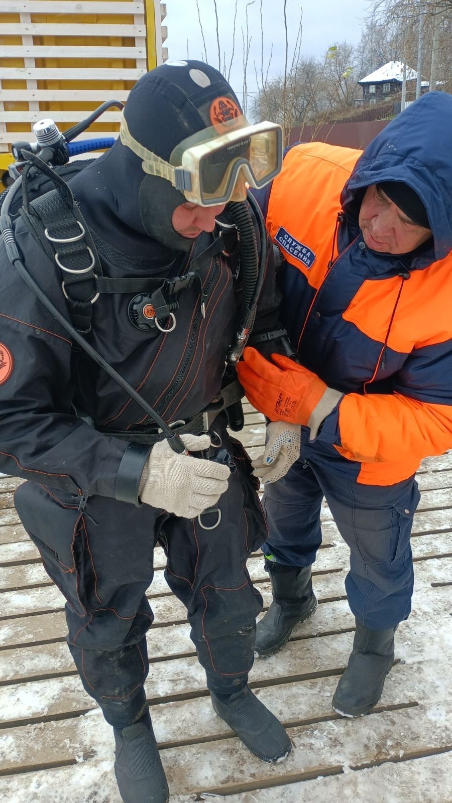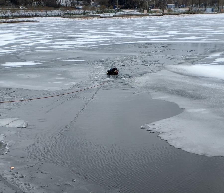 МКУ «Пермская городская служба спасения» опубликовала фотографии с места поисков мужчин, тела которых был найдены 29 октября в Мотовилихинском пруду. Для работ привлекались водолазы.