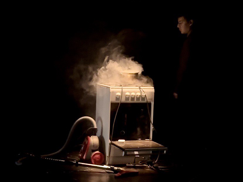Действие происходит в обычной городской квартире, избыточно заставленной разнообразной бытовой техникой. При появлении странных курьеров, которые привезли программисту Серёже таинственную посылку, эта техника чудесным образом оживает и обретает самостоятельное существование, свой в буквальном смысле голос — то ли она «подпевает» курьерам, то ли, наоборот, о чём-то предупреждает главного героя...