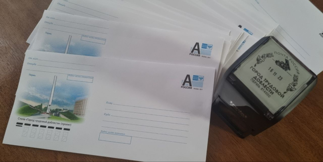 Почта России выпустила конверты с изображением стелы «Пермь – город трудовой доблести»