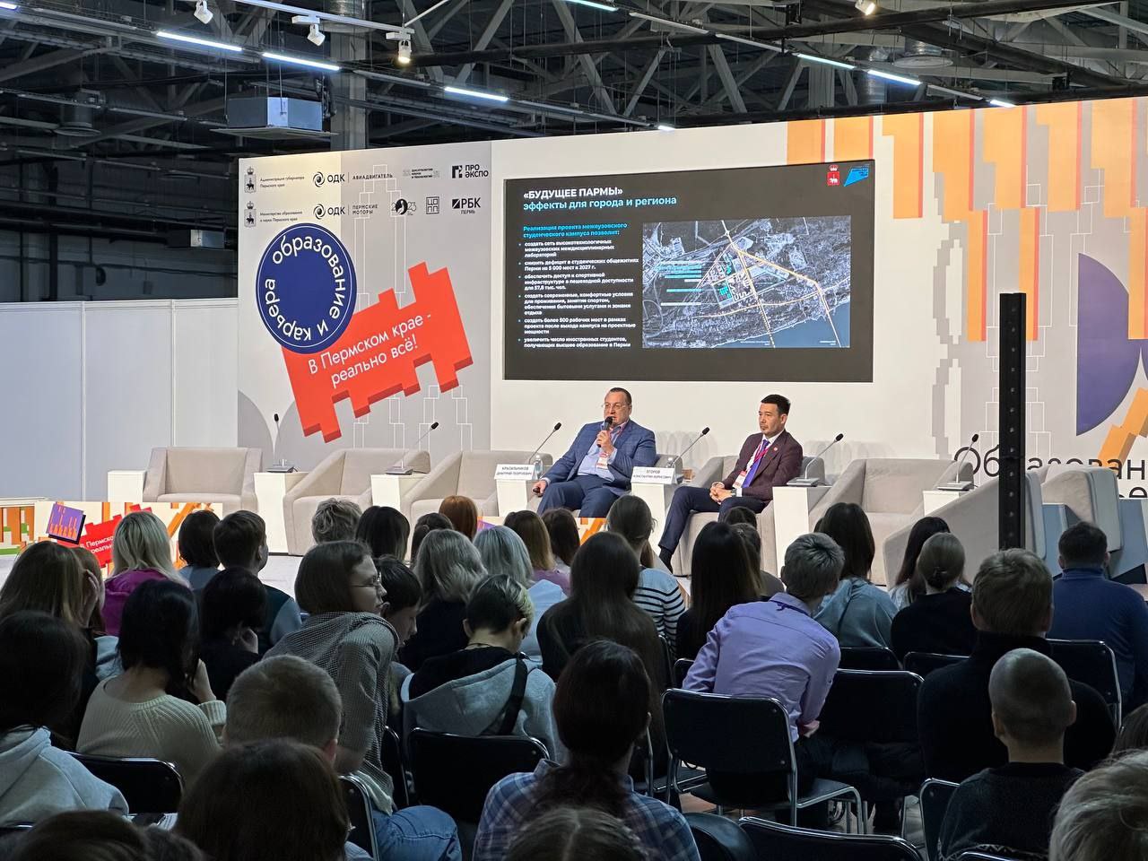 Председатель Совета ректоров вузов Пермского края Константин Егоров и глава дирекции кампуса «Будущее Пармы» Дмитрий Красильников презентовали участникам выставки «Образование и карьера» будущий студенческий городок в Камской долине. Мероприятие состоялось на прошлой неделе в краевой столице.