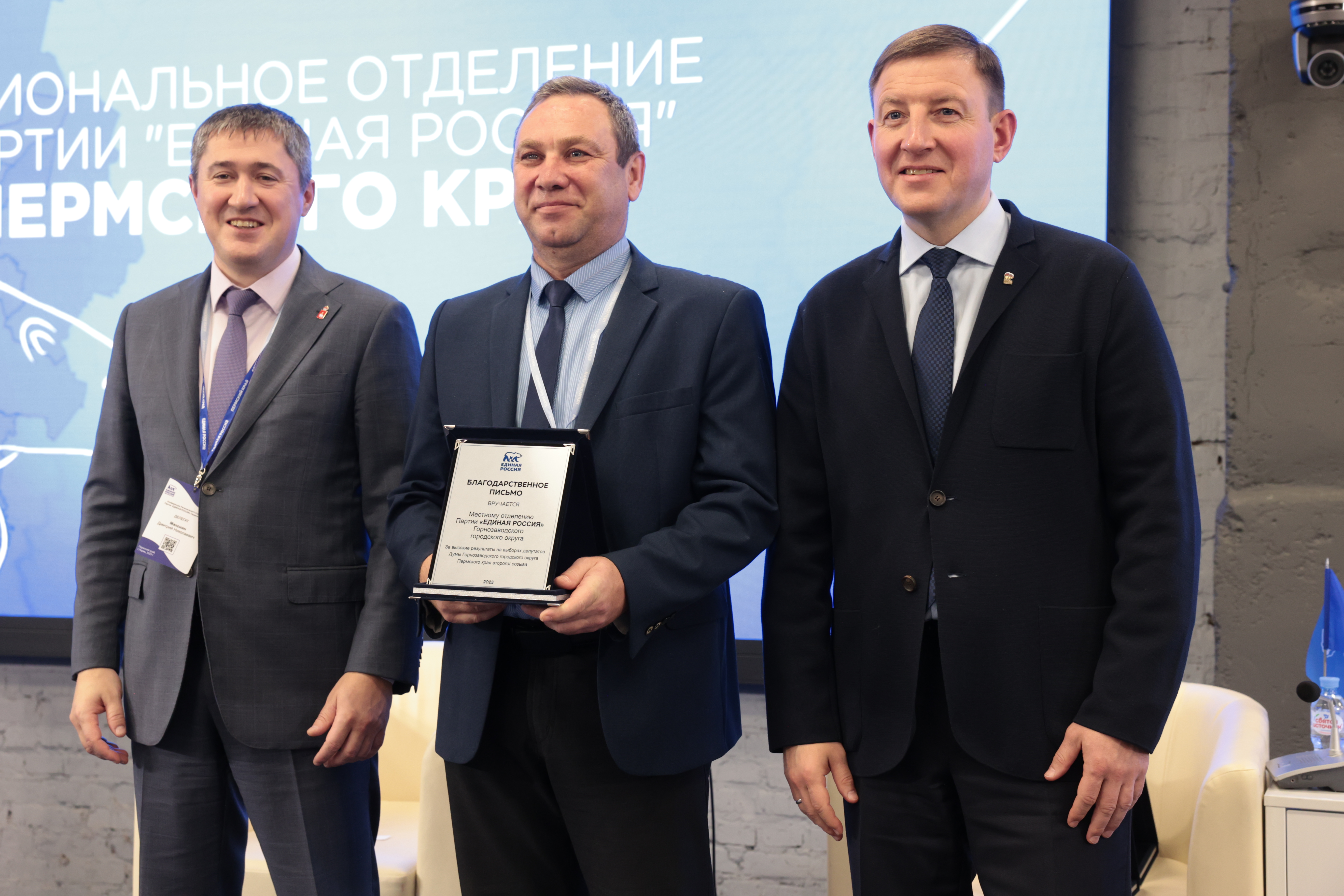 По окончании конференции Андрей Турчак и Дмитрий Махонин наградили представителей местных отделений партии за их активное участие в подготовке и проведении выборов в представительные органы муниципальных образований Пермского края в 2023 году, а также победителей конкурса среди первичных и местных отделений партии и лидеров мобильного приложения «Вверх» и «Агитатор». После награждения Андрей Турчак и Дмитрий Махонин вручили партийные билеты и значки новым членам партии — Петру Шиловских, министру информационного развития и связи Пермского края, и Александру Косовских, секретарю местного отделения партии Ильинского городского округа.