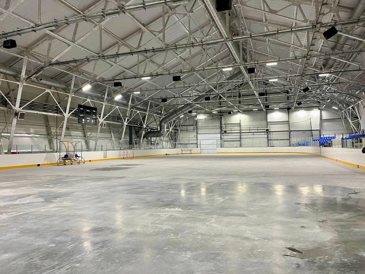 По словам Соснина, сейчас в административно-бытовом помещении завершается монтаж потолков, сантехники и пожарной системы. На самой ледовой арене завершается чистовая отделка и электромонтажные работы, подрядчик готовится к заливке ледового поля.