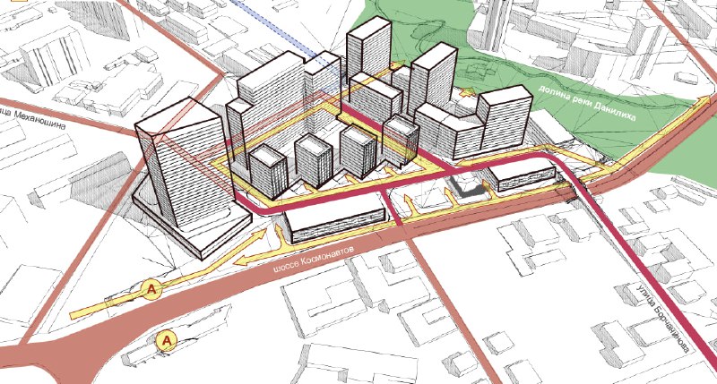 Компании намерены разработать проект, в который войдут комплекс многоквартирных жилых домов, улицы с «активным коммерческим фронтом», общественные и дворовые площадки, детский сад и рекреационная инфраструктура с выходом к природной территории — долине реки Данилиха. Новый комплекс появится в границах улиц Механошина, Нечаевской, Парижской коммуны и шоссе Космонавтов. Площадь застройки составит 4,5 га, всего планируется возвести около 90 тыс. кв. м жилья и 15 тыс. кв. м коммерческих помещений.