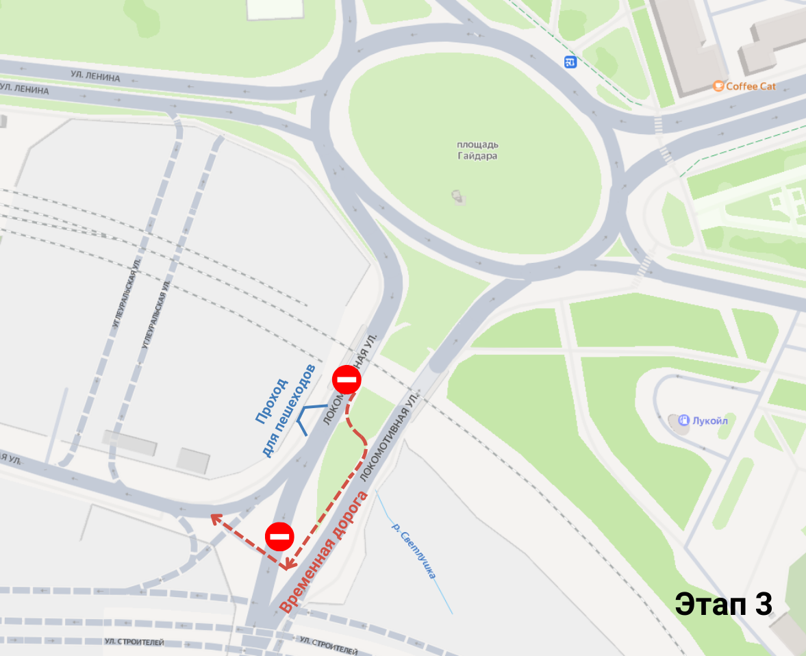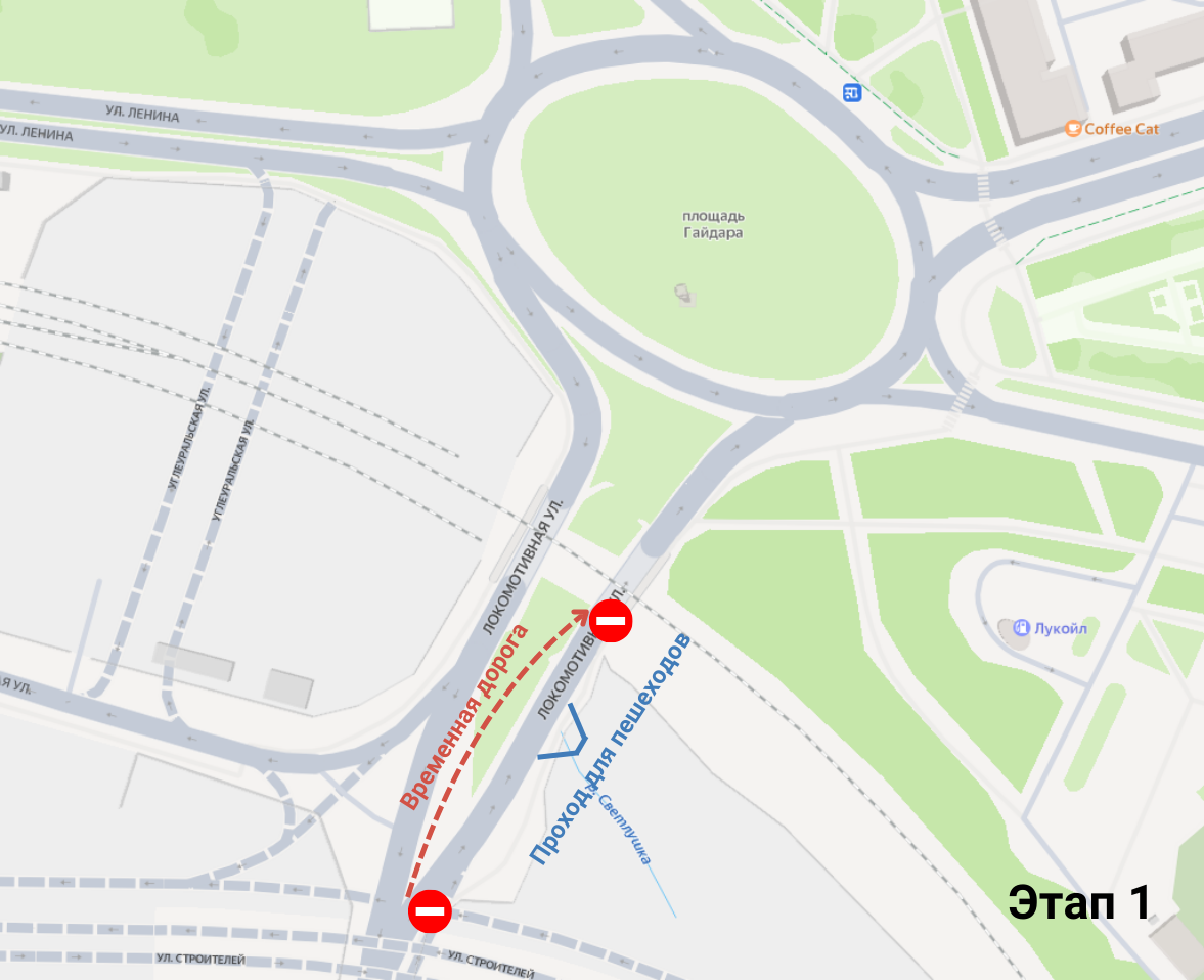 В ведомстве пояснили, что на участке будут проводиться работы по устройству водопропускной трубы в рамках строительства автомобильной дороги «Переход ул. Строителей — площадь Гайдара» на участке от примыкания ул. Папанинцев, ул. Барамзиной и 2-й Шоссейной ул. до пл. Гайдара.