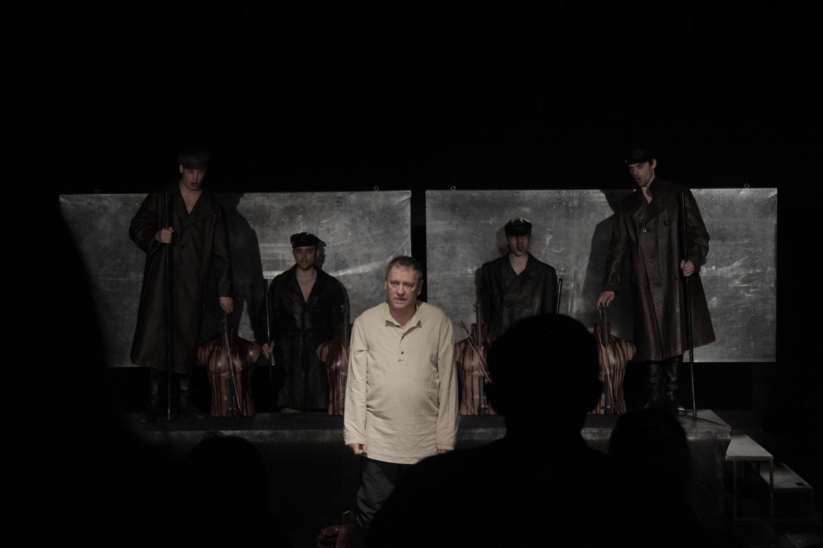 Формат пьесы отсылает к античному театру: здесь есть герой, антигерой и Хор. В главных ролях — Анатолий Смоляков и Олег Выходов.