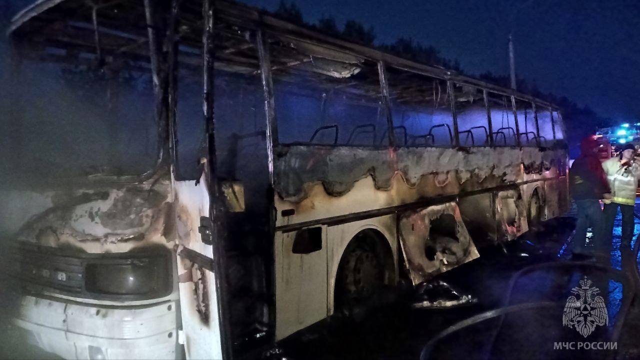 Сообщение о возгорании автобуса поступило 22 февраля в 18:02. К месту вызова были направлены две единицы техники и шесть человек личного состава. Когда пожарные приехали на место происшествия, происходило открытое горение. В 18:24 пожар удалось ликвидировать на площади 30 кв. м.