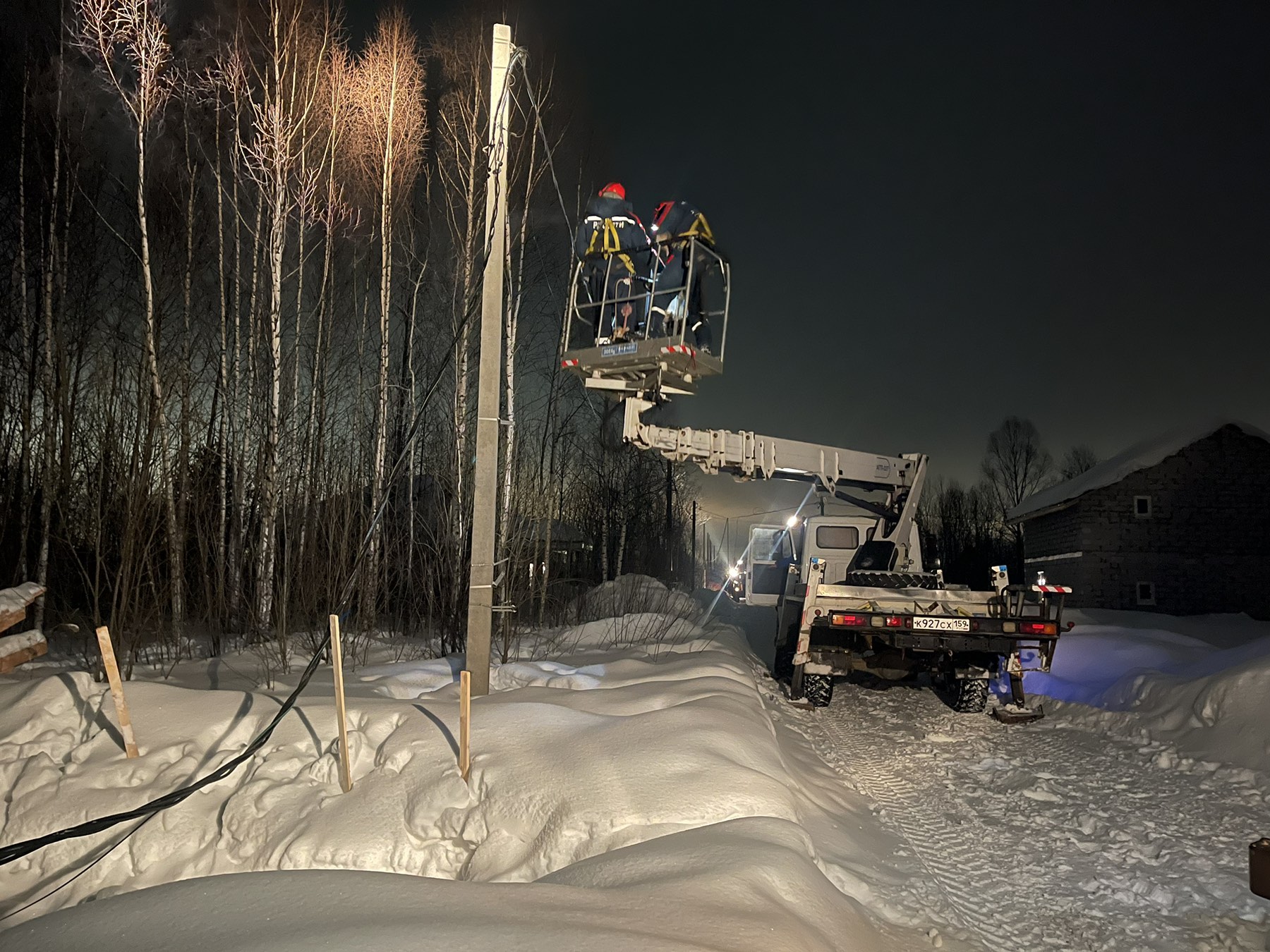 Энергетики филиала «Россети Урал» — «Пермэнерго» оперативно отремонтировали линию, повреждённую сторонним автокраном
