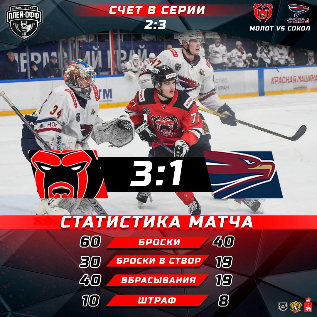 В пятницу, 1 марта, «Молот» и красноярский «Сокол» провели пятый матч 1/8 финала Кубка Петрова. Поединок прошёл в Перми и завершился со счётом 3:1 в пользу подопечных Павла Зубова.