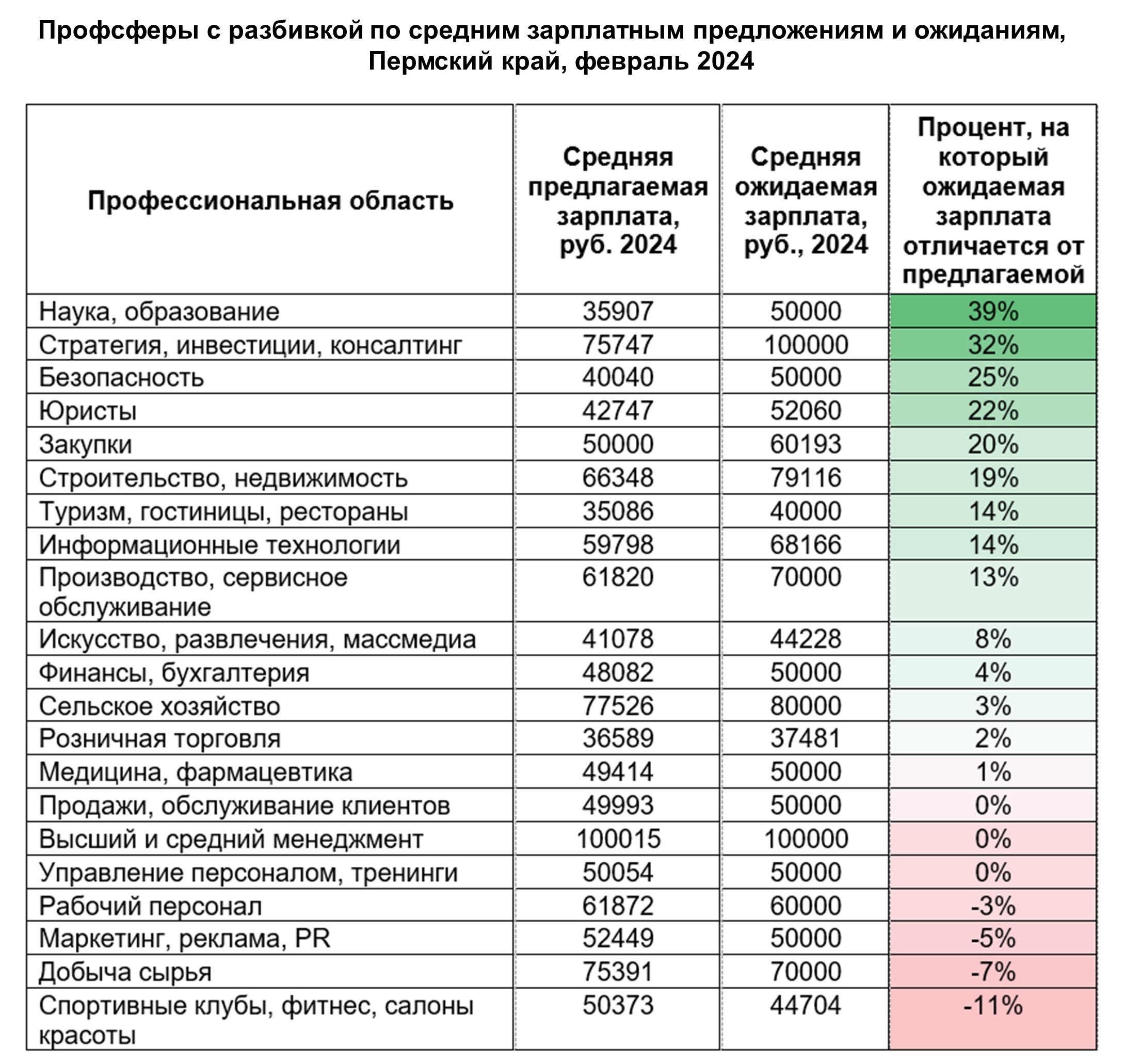 Средний размер зарплаты, которую компании-работодатели в Пермском крае готовы предлагать при найме сотрудников, в феврале 2024 года составил 50 175 руб. Это на 26% больше, чем в феврале 2023-го. Такие данные приводят аналитики рекрутинговой онлайн-платформы HeadHunter. При этом пермские соискатели указывали в своих резюме ожидаемый доход в размере 50 тыс. руб., что на 25% превышает показатели февраля прошлого года.