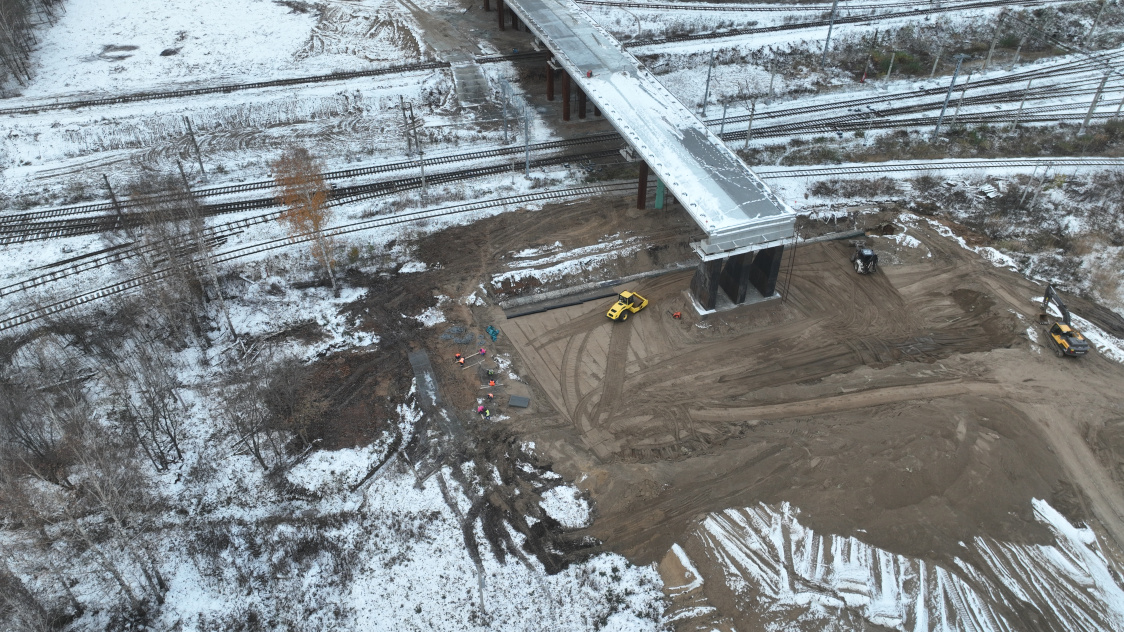 Самым капиталоёмким из них является строительство нового выезда с промузла «Осенцы» с кольцевой развязкой и путепроводом. Работы на объекте стартовали в 2022 году. Протяжённость всего участка составляет порядка 3,4 км, из них на 1,9 км ‒ новое строительство. Зимой работы на дорожной части не ведутся, поэтому основные работы сконцентрированы на путепроводе, который соединит ул. Промышленную с основным ходом дороги и выездом на Нестюковский тракт. Сейчас там идут сварочные работы на перильном ограждении, завершены работы по отсыпке конусов в районе первой и девятой опор. До наступления зимы на путепроводе был уложен защитный слой, слой гидроизоляции и защитный бетонный слой на шести пролётах. С наступлением положительных температур дорожный пирог будет уложен на оставшихся двух пролётах, после чего строители приступят к укладке асфальтобетонной смеси. Будущий путепровод по проекту состоит из восьми пролётов: четырёх больших (по 33 м длиной каждый) и четырёх пролётов меньшей протяжённости, от 9 до 24 м. Общая длина будущего путепровода — 208 м.