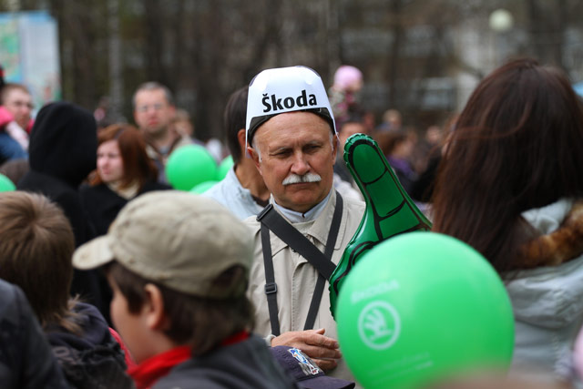 Конечно, все участники станций получили подарки: магниты, шлемы, надувные руки — все с символикой SKODA.