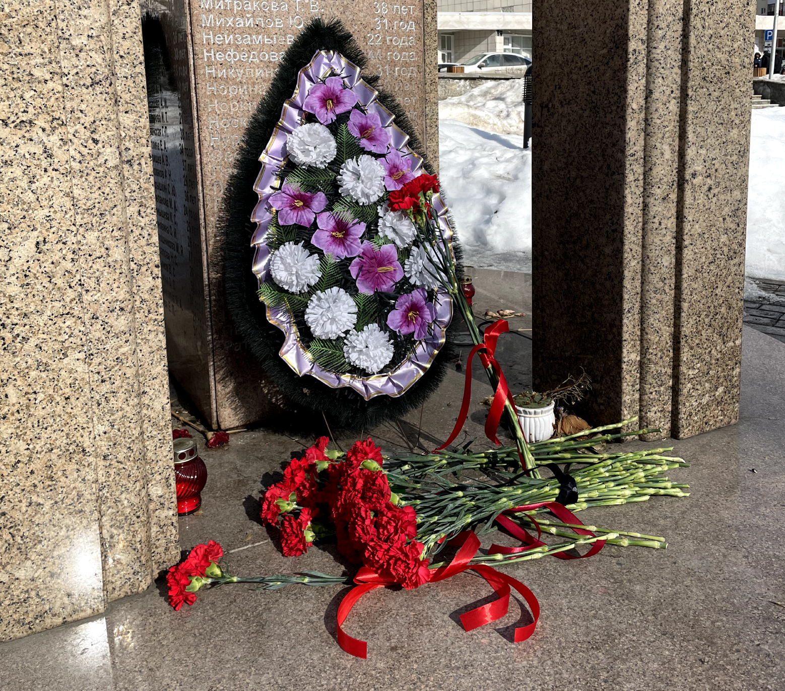После теракта в «Крокус Сити Холле» на здании ТЦ «Колизей» в Перми появился билборд со свечой скорби и надписью «22.03.2024». Горожане начали приносить к нему цветы.
