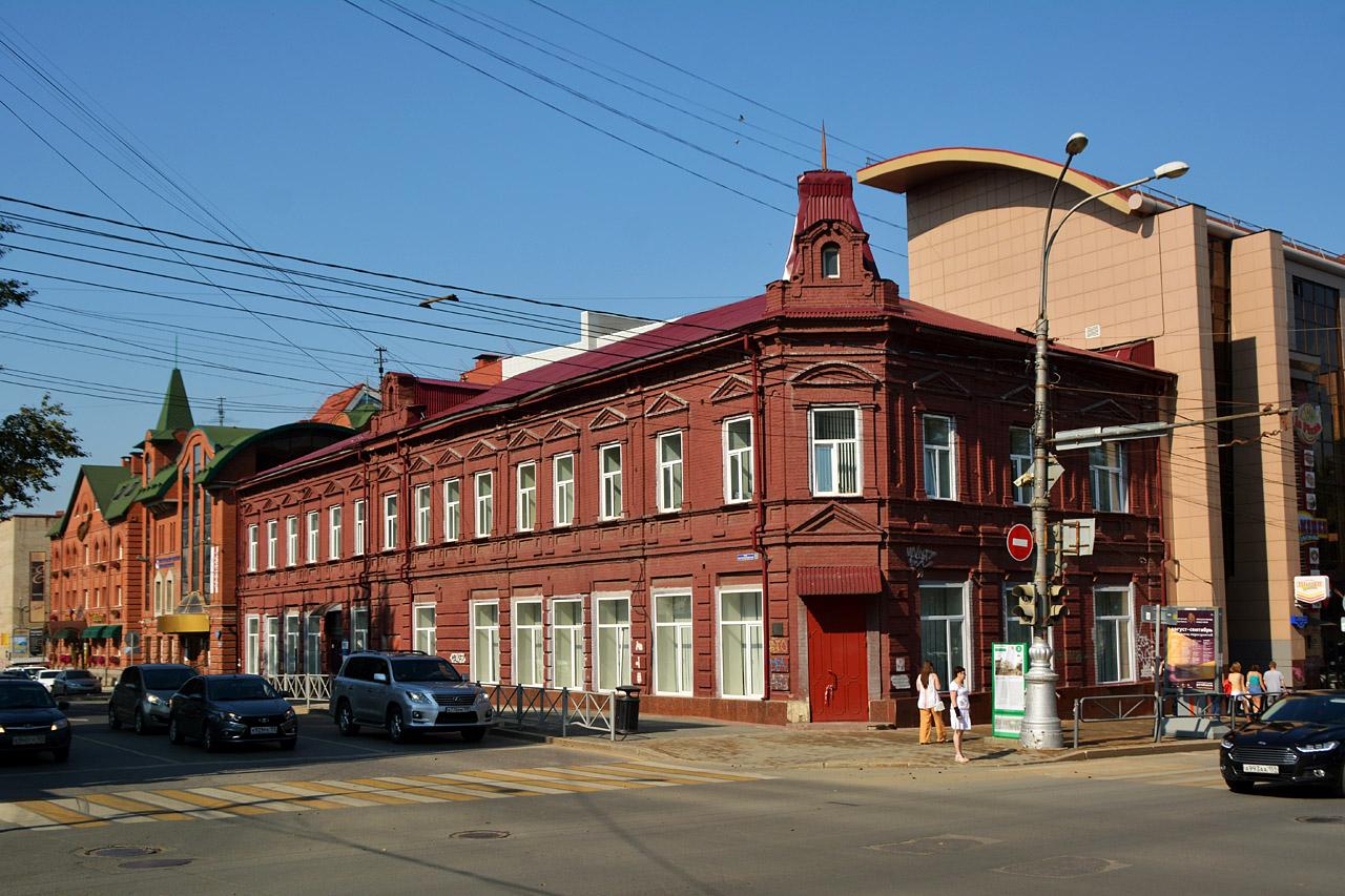 Двухэтажный каменный дом был построен в конце XIX века архитектором Р.И. Карвовским и принадлежал купчихе Марии Барановой. Она владела магазинами бакалеи на Чёрном рынке, который находился на территории нынешнего Сквера уральских добровольцев. Её муж Григорий Баранов торговал пряниками и кренделями, которые пеклись в этом доме.