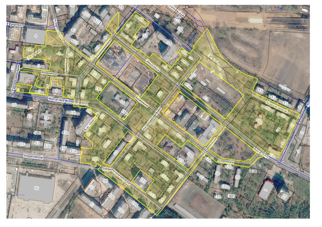 На данный момент на участке находятся три многоквартирных дома общей площадью около 4 тыс. кв. м, которые признаны аварийными. Это дома по ул. Барамзиной, 70 и 72 и по ул. Папанинцев, 19. В рамках проекта они будут расселены и снесены. Также планируется изъять и снести 10 объектов капитального строительства нежилого назначения и три объекта индивидуального жилищного строительства.