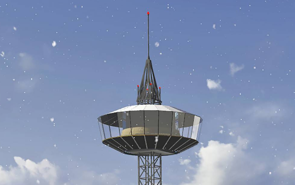 Отмечается, что высота шпиля составит 49 м, смотровая площадка расположится на отметке в 40 м. Подняться наверх будет можно в застеклённой гондоле с зоной отдыха вместимостью до 30 человек. Зимой она будет отапливаться, а летом — охлаждаться кондиционерами.