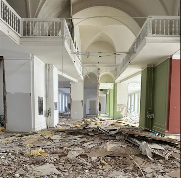 Он опубликовал также фотографии проводимых работ. Сейчас работники демонтируют старую отделку.