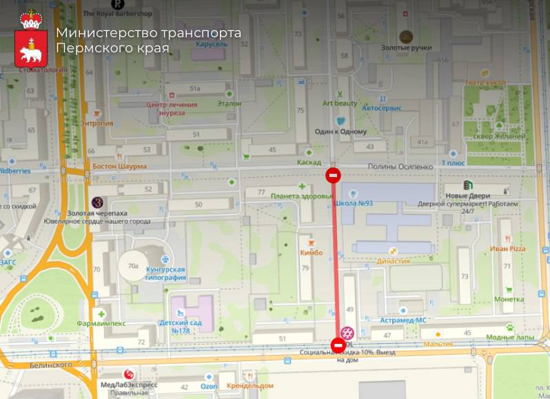 В связи с работами по реконструкции тепловой сети, которые проводятся по заказу АО «Т Плюс», с 15 мая до 15 июля временно прекращается движение всех видов транспорта по ул. Газеты «Звезда» на участке от ул. Белинского до ул. Полины Осипенко. Об этом сообщает ВЕТТА со ссылкой на ГКУ Центр безопасности дорожного движения Пермского края.