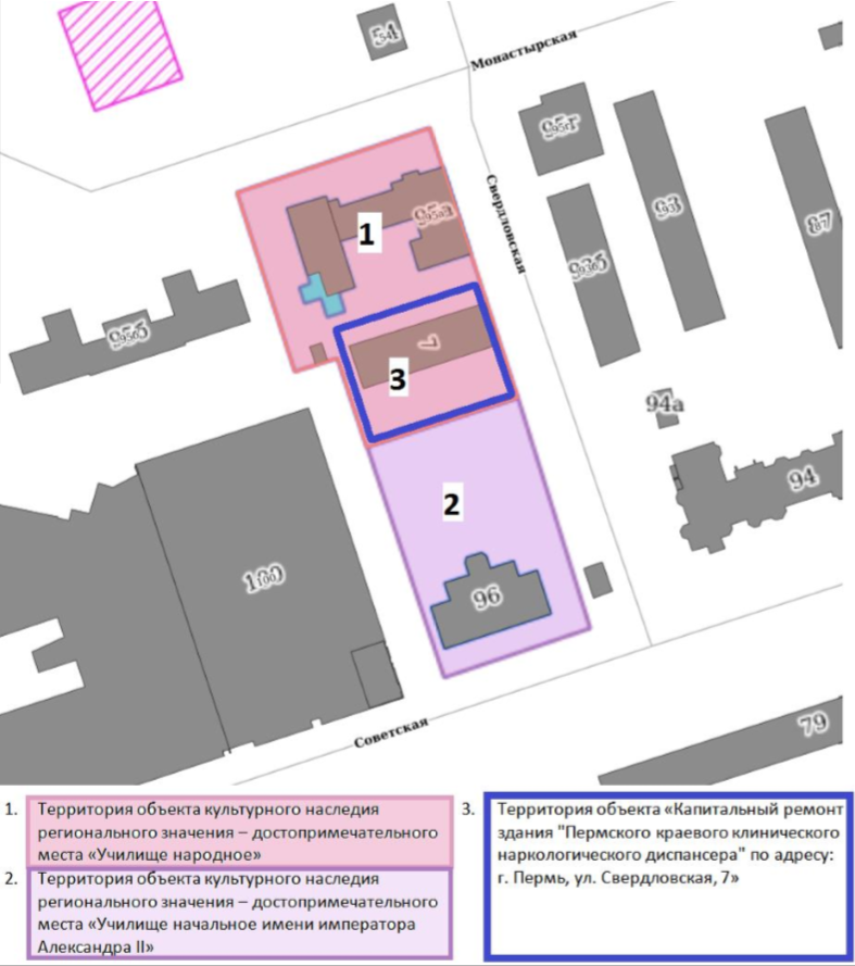 Государственная историко-культурная экспертиза 21 мая выдала положительное заключение на проектную документацию по капитальному ремонту здания «Пермского краевого клинического наркологического диспансера» по ул. Свердловской, 7 в Перми. Проектом предусматривается сохранение территории объекта культурного наследия (ОКН) регионального значения «Училище народное» (ул. Монастырская, 95а).