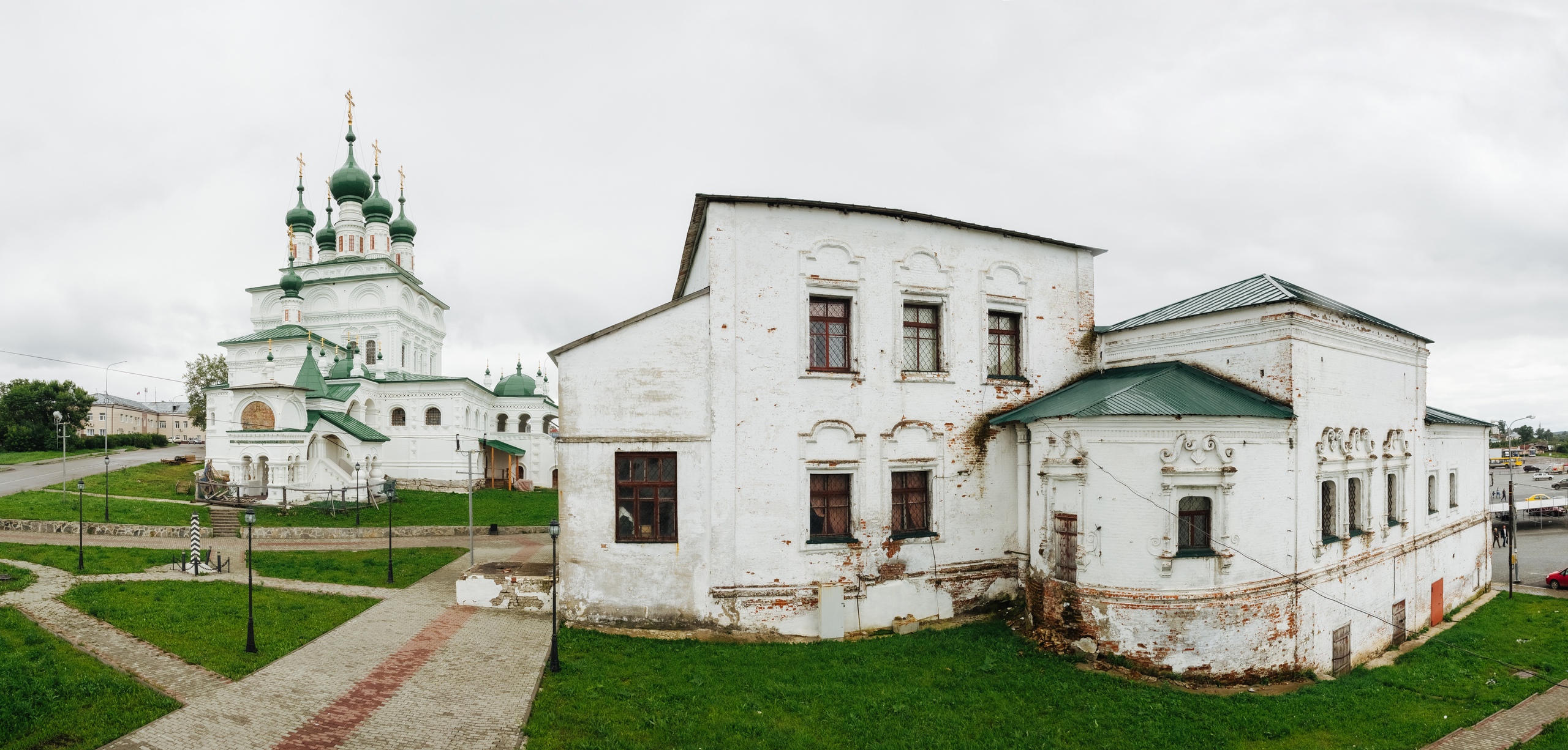 Одноэтажное здание церкви с подвалом и мезонином было построено в 1714-1752 годах на месте двух сгоревших деревянных церквей. Его площадь составляет 959,9 кв. м. Церковь была пятиглавой, с колокольней и пятью колоколами. После закрытия церкви в конце 20-х годов XX века был утрачен иконостас, разобраны купола и колокольня, в здании была организована ватная фабрика и фабрика по пошиву обуви. В настоящее время в здании находятся галерея домовой росписи Пермского края и отдел фондов Соликамского музея.