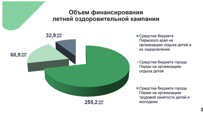Объём финансирования летней оздоровительной кампании в этом году составит 357 млн руб., из которых 32,9 млн — средства городского бюджета.