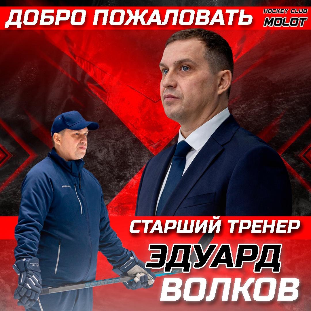 В пресс-службе ХК «Молот» сообщили о кадровом назначении. Пост старшего тренера команды занял 48-летний Эдуард Волков.