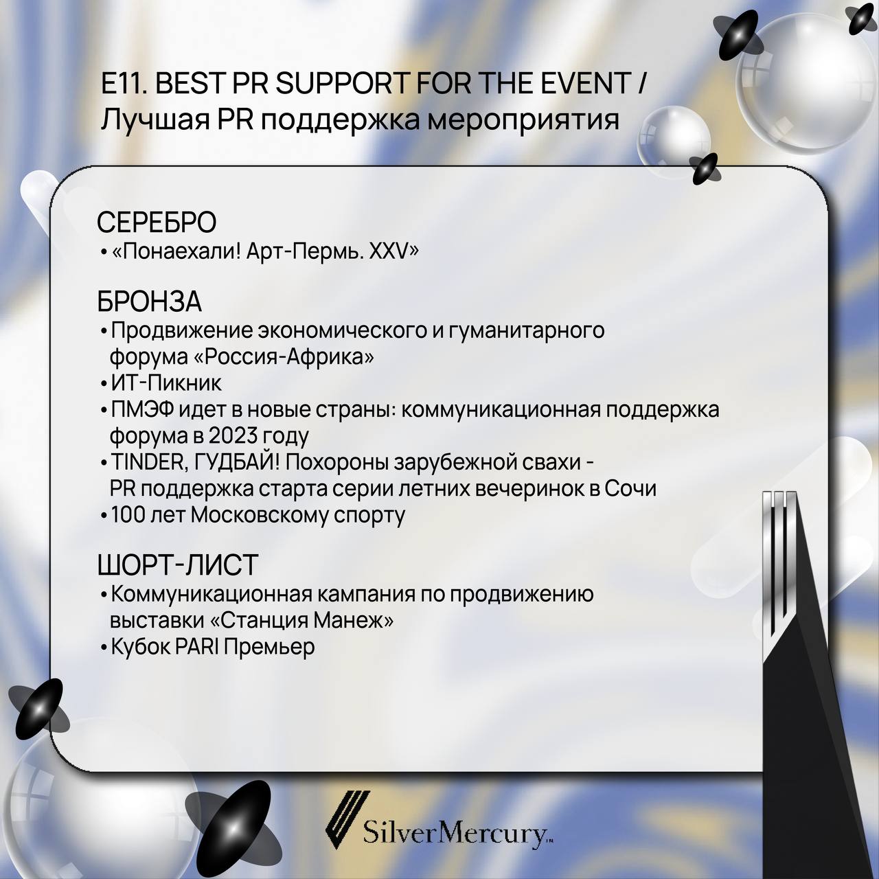 Silver Mercury — одна из самых престижных российских премий в сфере рекламы и маркетинговых коммуникаций. PRO Expo была единственной компанией, представлявшей Пермский край.