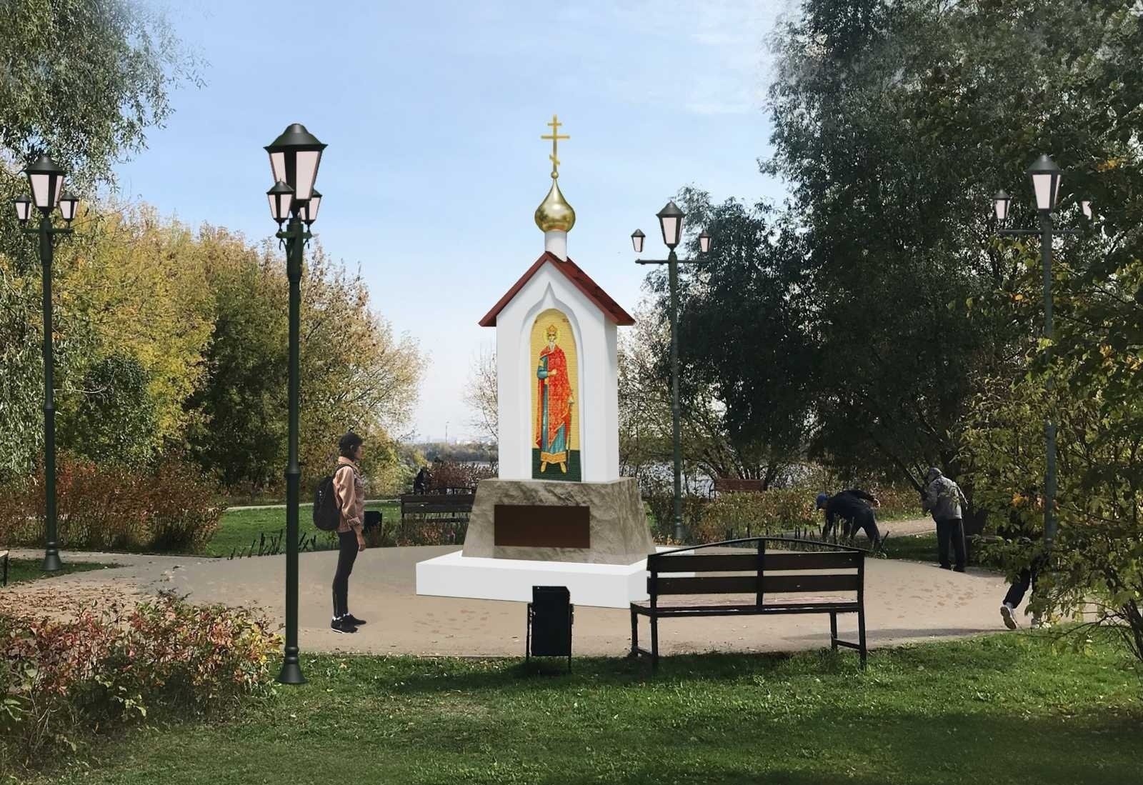 Согласно техзаданию, киот должен быть выполнен из керамического кирпича и иметь высоту 2,5 м. На киоте предполагается разместить две мозаики «Икона Святого Князя Владимира» из смальты с золочением из сусального золота и «Тропарь князю Владимиру». Обе мозаики должны быть выполнены согласно канонам русской православной церкви. Также на киоте должна быть установлена литая из чугуна мемориальная табличка.