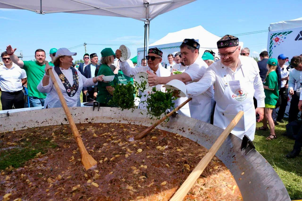 На площадке Сабантуя был также поставлен рекорд России и мира по приготовлению самого большого азу по-татарски. Блюдо вместило в себя 3,6 тыс. порций. Оно было изготовлено на пермской Царь-сковороде, отлитой на Мотовилихинских заводах.
