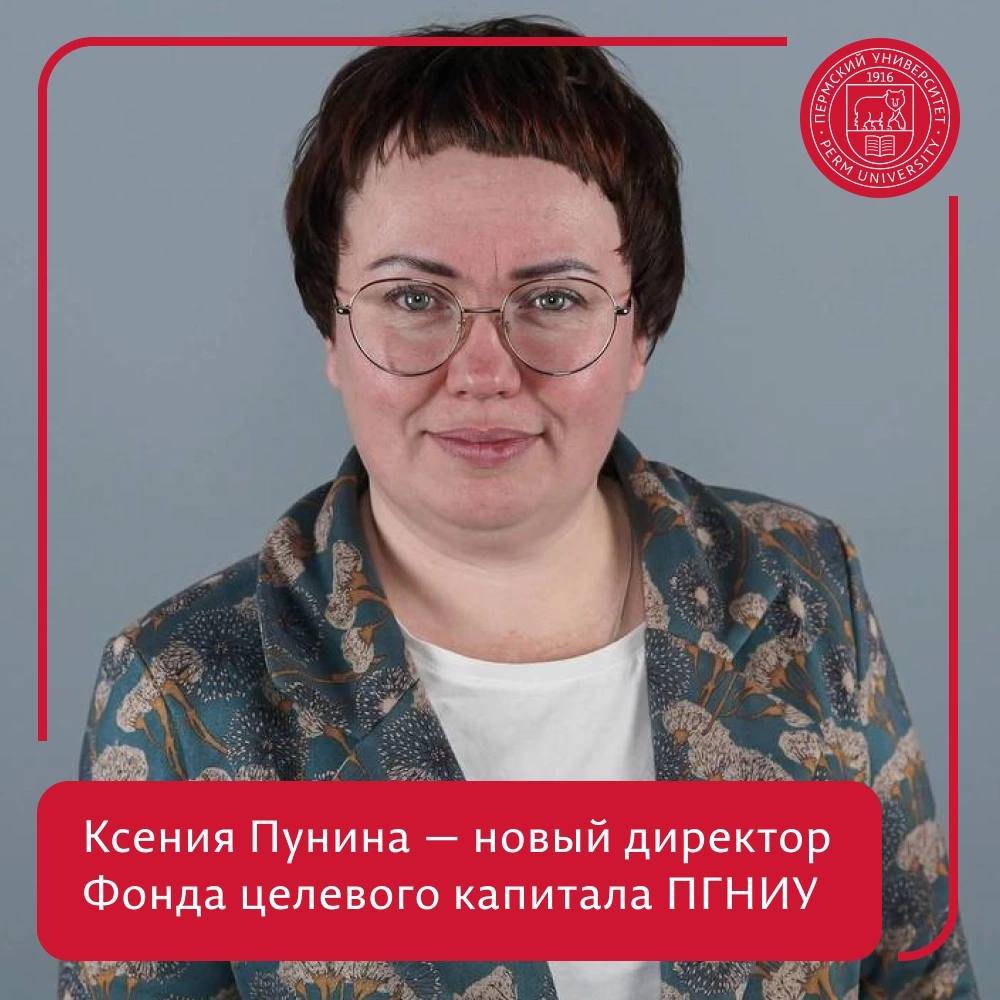 Новым директором Фонда целевого капитала (эндаумент-фонда) Пермского государственного научного исследовательского университета стала Ксения Пунина. Решение о назначении Пуниной принял президиум фонда. Об этом сообщили в пресс-службе ПГНИУ.