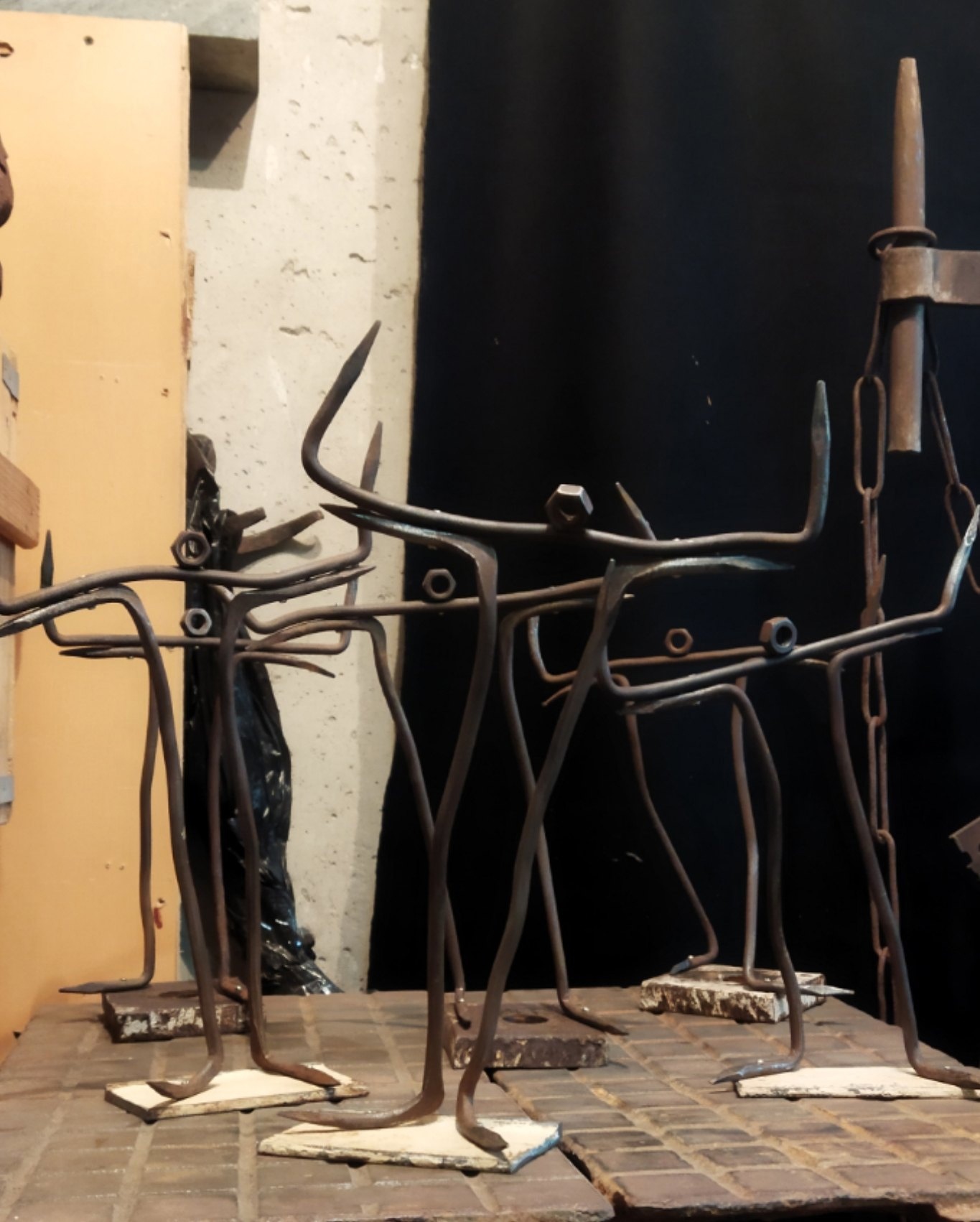 История арт-объекта Николая Полисского «Пермские ворота» получила неожиданное продолжение. Скульптор Олег Филимонов, создающий объекты из старого железа, сделал из скоб, скреплявших брёвна «Пермских ворот», серию «железных человечков».