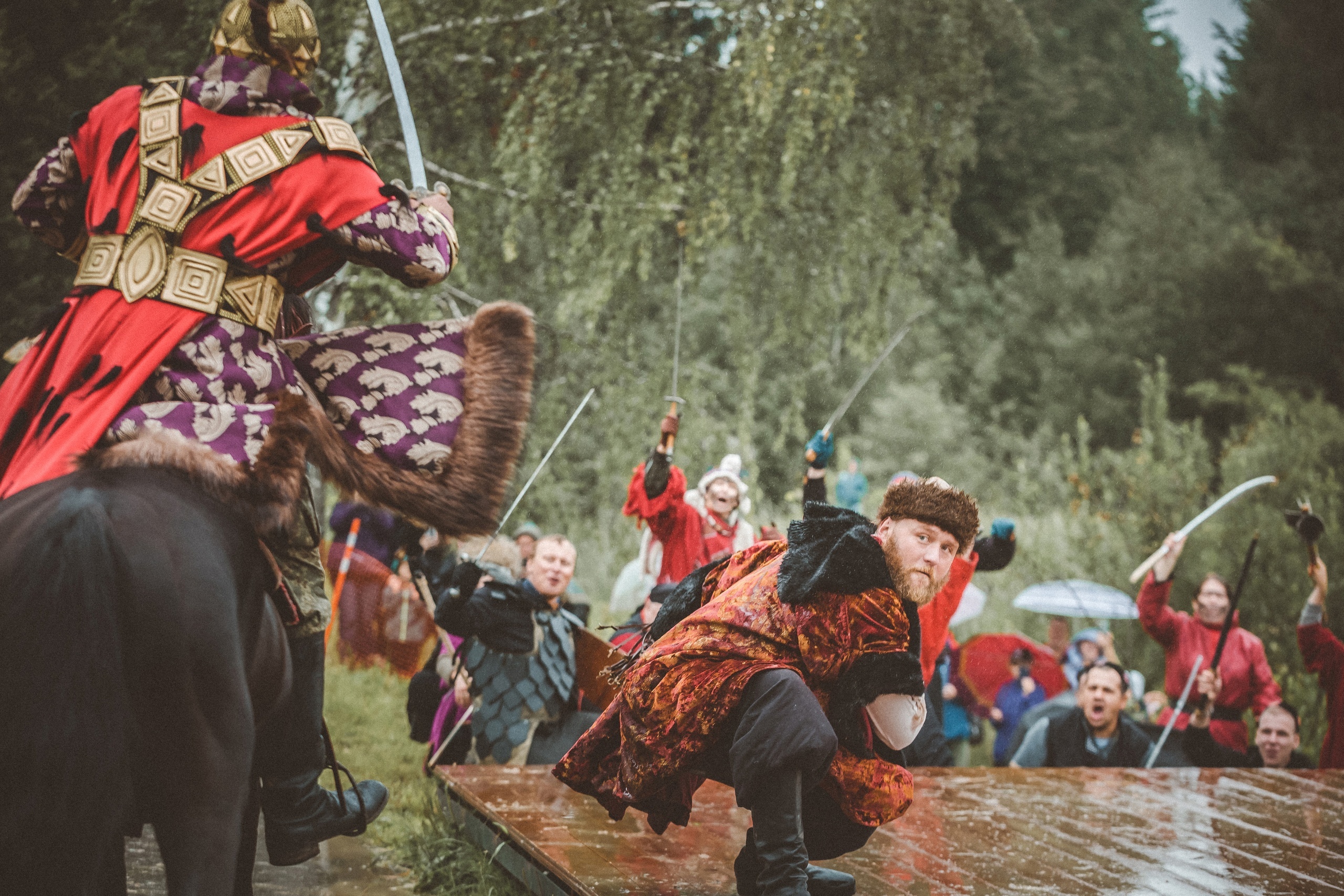 Её спустили на воду в парке «Ермак». Там же развернулось реконструкторское шоу по мотивам истории покорения Сибири.