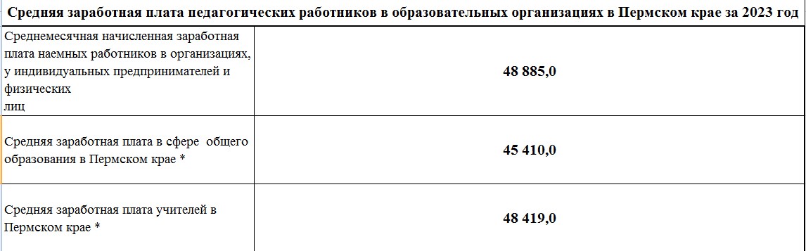 На сайте министерства образования Пермского края опубликованы сведения о заработной плате учителей региона за 2023 года. Средняя зарплата за этот период в Прикамье составила 48 тыс. 419 руб.