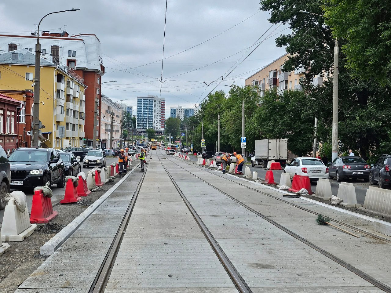 «В ходе реконструкции полностью заменили рельсошпальную решётку. При укладке путей подрядчик использовал бетонные шпалы, а также новый тип креплений, что продлит срок службы трамвайного пути. Использование резиновых прокладок и сварка стыков обеспечит плавность хода и существенно снизит уровень шума от движения вагонов», — отметил глава Перми.
