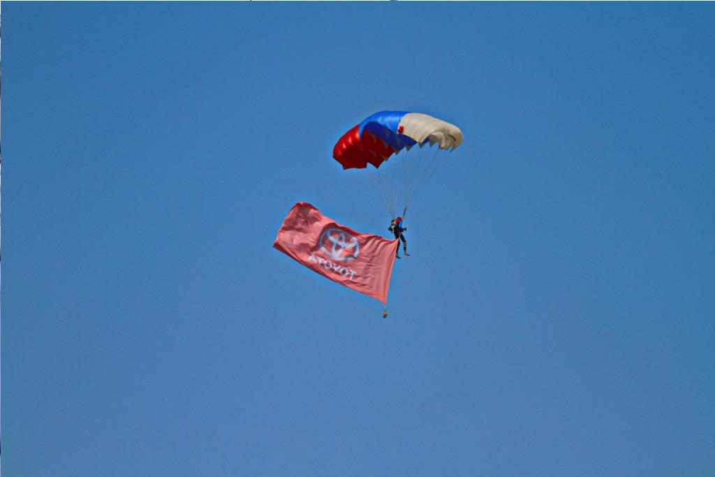 Для гостей были подготовлены настоящие мужские развлечения — стрельба из арбалетов, пневматических пистолетов и метание ножей. Большое внимание привлекли парашютисты, которые совершали прыжки с флагом Toyota.