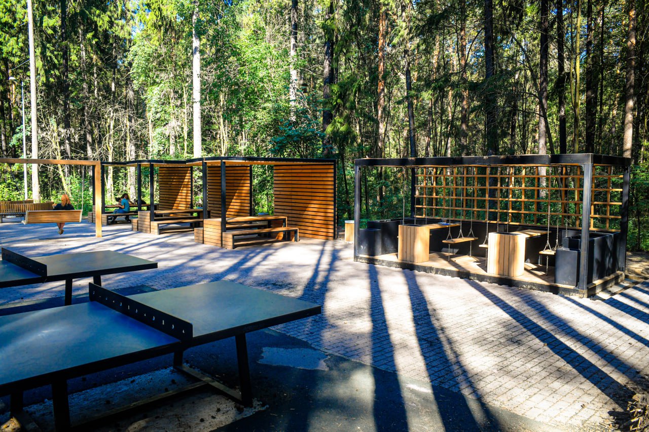 Также в парке продолжается монтаж кабельных линий наружного освещения и системы видеонаблюдения, подготовка оснований для детских площадок и демонтаж бетонных конструкций с последующим восстановлением газонов. Кроме того, здесь уже появились футбольная и баскетбольная площадки, а также тротуар и пешеходные дорожки, обеспечивающие доступ к визит-центру со стороны ул. Подлесной.