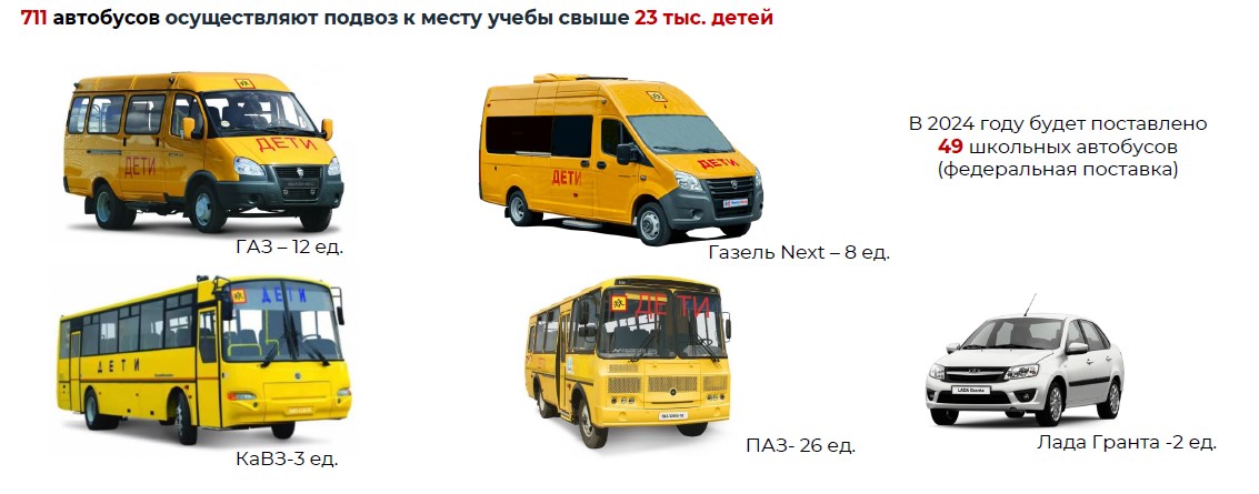 Также чиновница затронула вопрос доставки детей до школ. В Пермском крае к месту учёбы их доставляют 711 автобусов — это около 23 тыс. ребят. В этом году Федерация выделила ещё 49 школьных автобусов по заявке краевых властей. Они будут поставлены в ближайшее время.