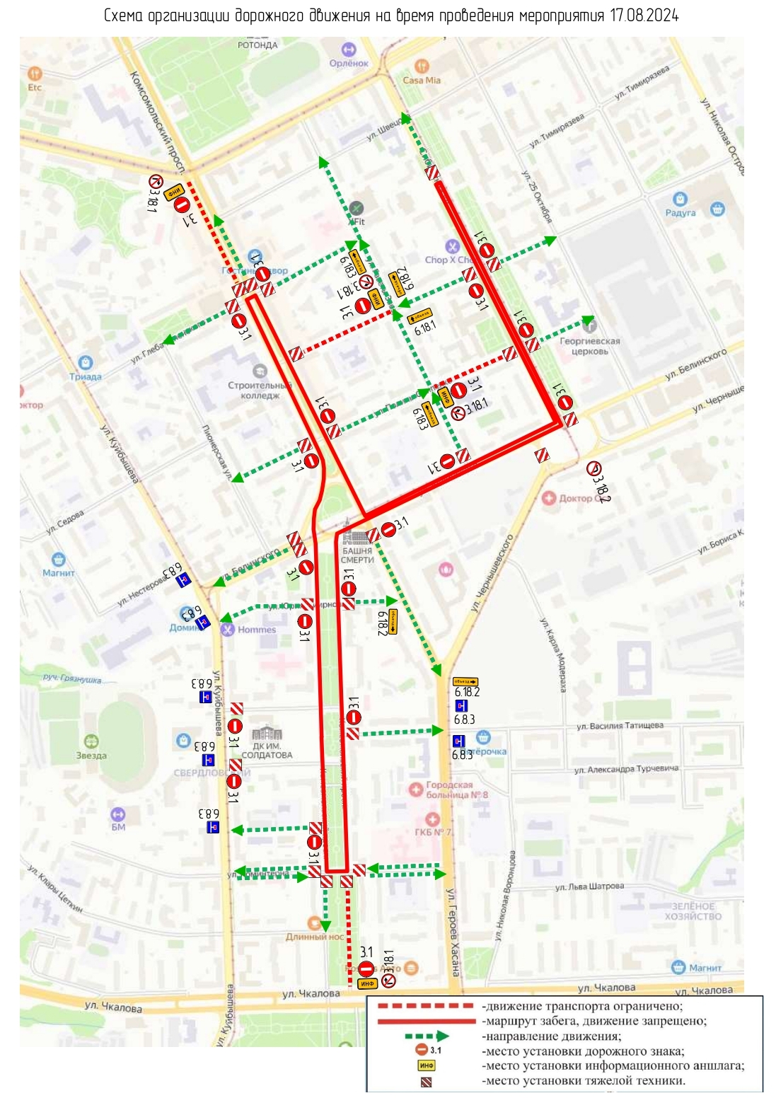 При этом с 22:00 16 августа до 01:00 18 августа будет запрещена остановка и стоянка транспортных средств на следующих участках улиц города: