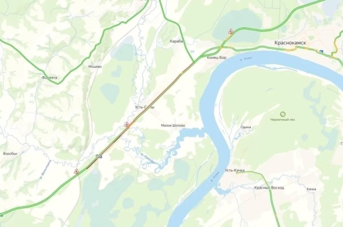 Утром 3 сентября на участке дороги между Краснокамском и Нытвой образовался автомобильный затор. В 9:30 на Яндекс.Картах трасса в обоих направлениях была окрашена в бордовый и красный цвета на участке протяжённостью свыше 9 км. В районе скопления машин стоит значок «ремонтные работы». Об этом сообщает perm.aif.ru.