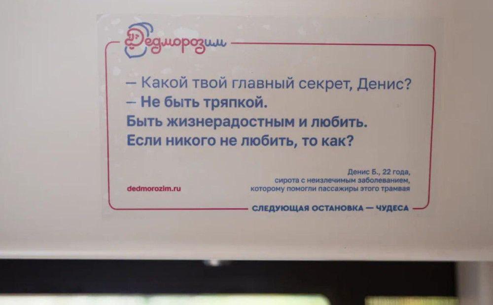 В пермских трамваях появились цитаты подопечных фонда «Дедморозим»