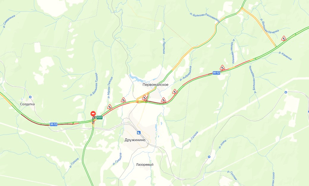 На участке трассы Пермь–Екатеринбург возникла большая пробка рядом с селом Первомайское и пгт Дружинино. Яндекс.Карты показывает общую длину затора более 17 км. При этом движение затруднено как в сторону Перми, так и в сторону Екатеринбурга.