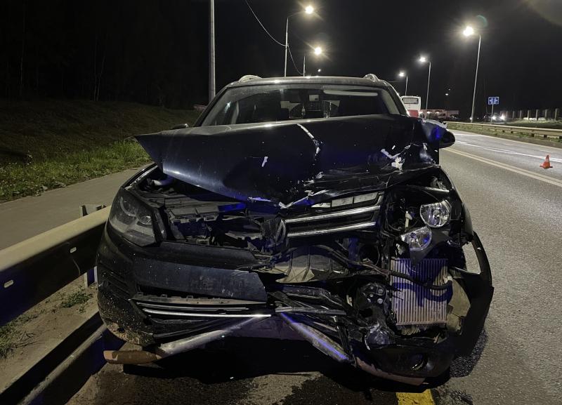 «Фольксваген Туарег», по предварительным данным, столкнулся с «Рено Логан». От удара легковушку отбросило на двигавшийся во встречном направлении рейсовый автобус.