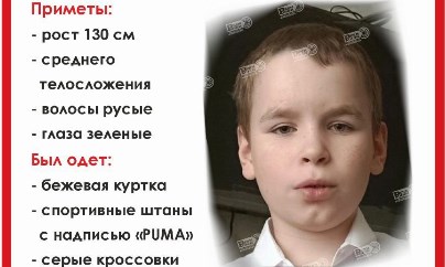 Приметы пропавшего: рост 130 см, среднего телосложения, русые волосы и зелёные глаза.