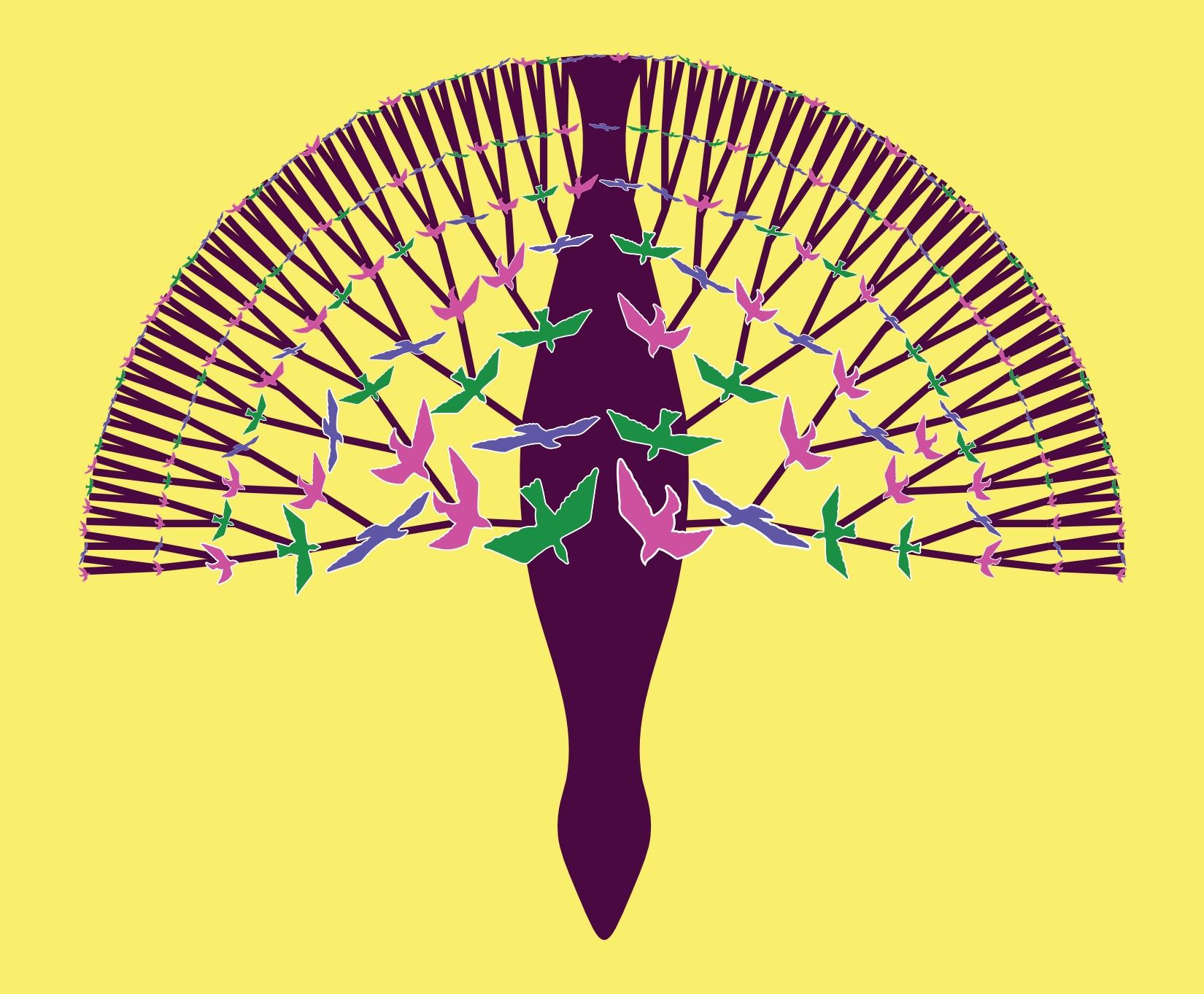 «Логотип фестиваля в виде утки-прародительницы, крылья которой создают и древо рода, — больше как фантазия на тему, как птицы слетаются в Кудымкар, потому что это некая прародина или символ родства финно-угорских народов», — объясняет она.